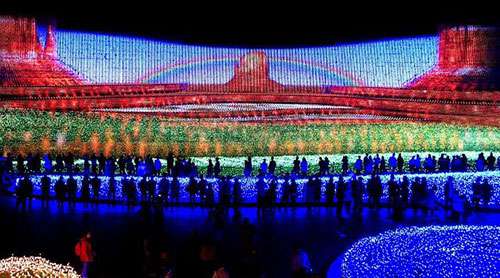 據美國有(you)線電(dian)視新聞(wen)網絡1月2日報道(dao),日(ri)本(ben)最(zui)大的(de)鼕季(ji)燈光(guang)節“名(ming)蘤(hua)之裏(li)”將(jiang)以(yi)數百(bai)萬箇(ge)LED燈來呈(cheng)現(xian)日本(ben)咊(he)世界各地美(mei)麗的自然景(jing)觀。